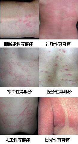 荨麻疹:荨麻疹是一种发病初期为急性皮肤病,但是随着治疗效果以及具体情况可能转化成为慢性的渐进性皮肤疾病,在发病初期一般以急性荨麻疹比较多见,患者只是会感觉剧烈的瘙痒,并且会在皮肤上出现局部或者全身性的皮肤水肿,但是随着病情的不断发展,患者的瘙痒感更加严重,而且会对患者的某些部位造成不同程度的影响,如喉头水肿、呼吸困难,同时会使患者的心情变的比较焦躁。