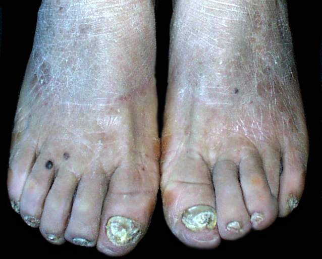 2、身体有疾病:身体患有疾病,特别是血糖高的人,很容易诱发灰指甲的发生。有疾病时,身体的抵抗力会下降,对疾病的免疫力自然会下降,对指甲抵御真菌的能力降低,很容易导致灰指甲的发生。